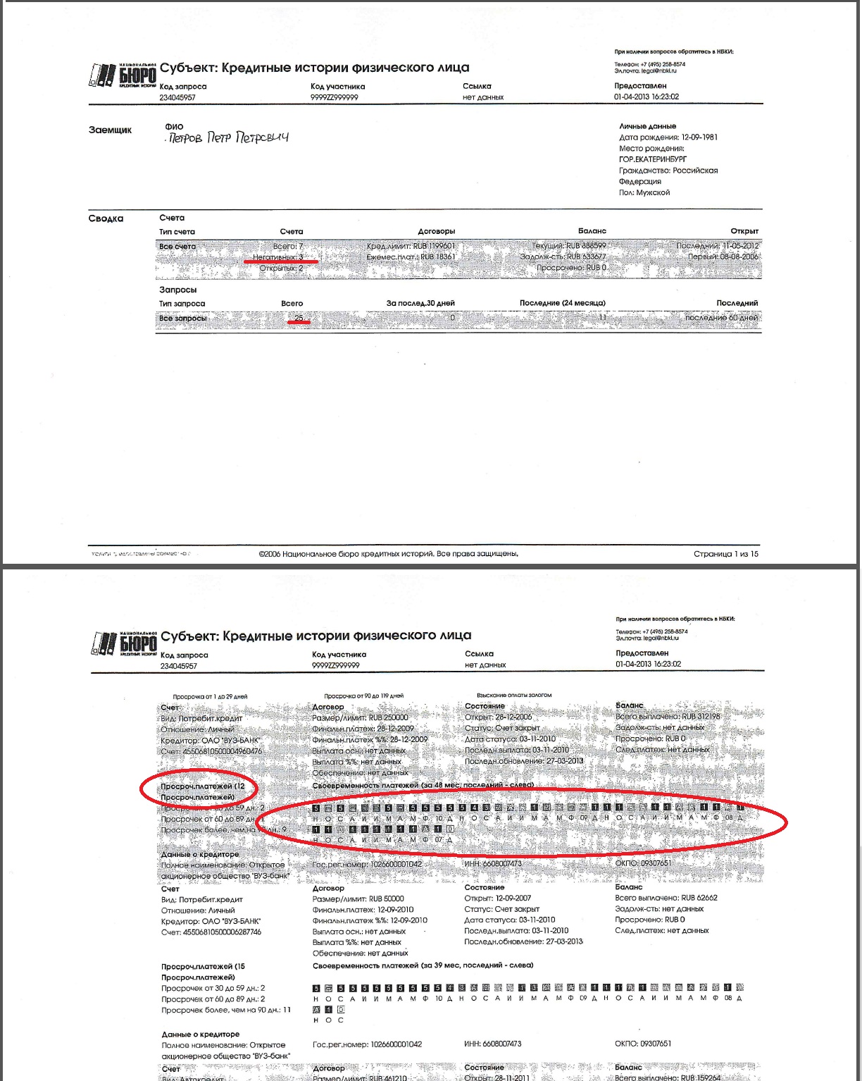 • Данные по каждому действующему кредиту или как прочитать свою кредитную историю: