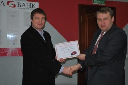 14 февраля 2013г. победителю стимулирующей лотереи «Кредит на время, подарок навсегда!» Деуленко Сергею Александровичу (клиенту Операционного офиса «Октябрьский» в г. Тамбове ОАО «ГУТА-БАНК») был вручен автомобиль Шкода Фабиа.